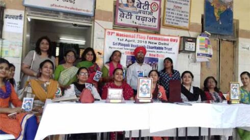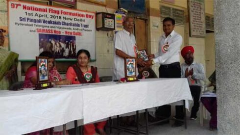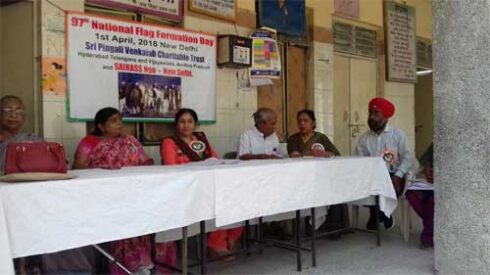 Sri Pingali Venkaiah Charitable Trust (R) Delhi Unit and SAIRASS NGO celebrated “ 97th National Flag Formation Day” on 1st April, 2018 at E.D.M.C. Pratibha Vidyalaya I, Chandra Vihar, I.P.Extn. Delhi.